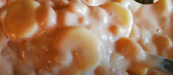 Open a can of baked beans and add to the sliced bananas. (with all the sauce)