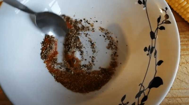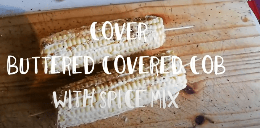 - Take your spice mix and cover the whole cob over the butter.