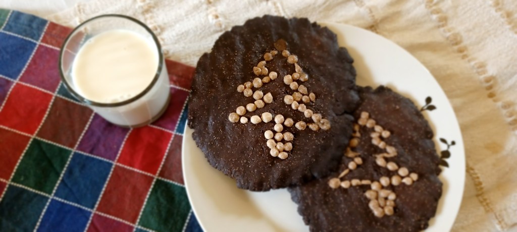 Super easy Chocolate cookie with chocolate chip Christmas tree decoration.