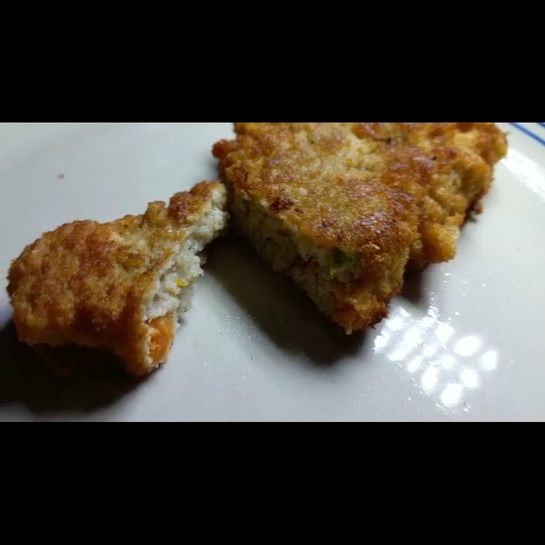 Homemade veggie & hake fish cake