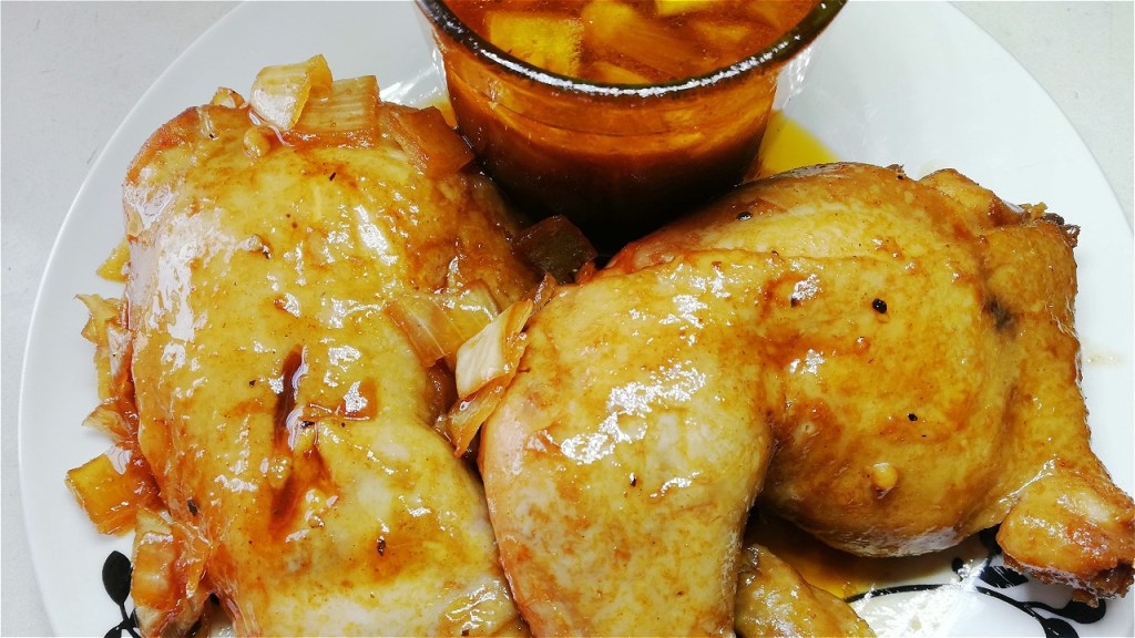 - Cover chicken with salt and pepper and all the sweet and sour onion mixture.