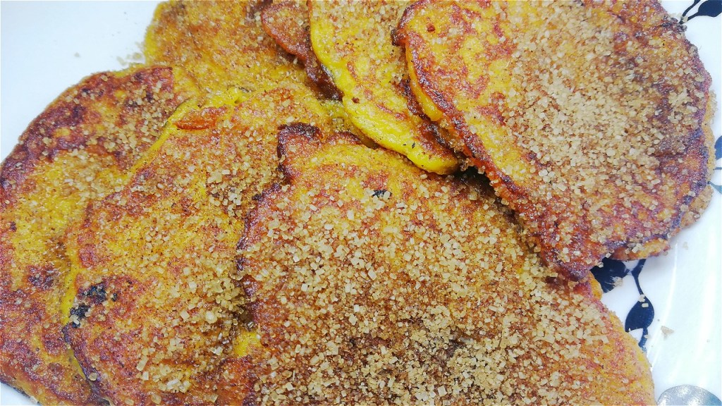 - Add spoons full of the pumpkin mixture and shallow fry till golden brown on each side