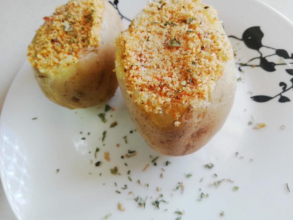 - Mix in another small bowl some breadcrumbs with olive oil, salt, pepper and mixed herbs.