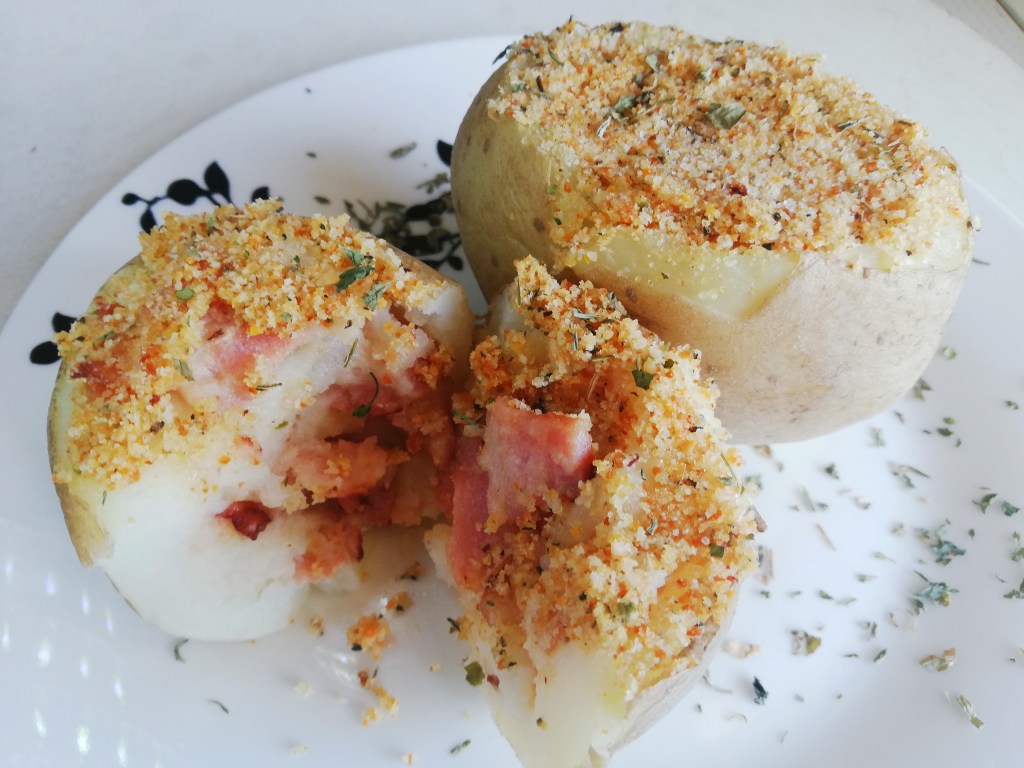 - Add teaspoons full of the bacon and mashed potato mix to the “potato bowl” – set aside